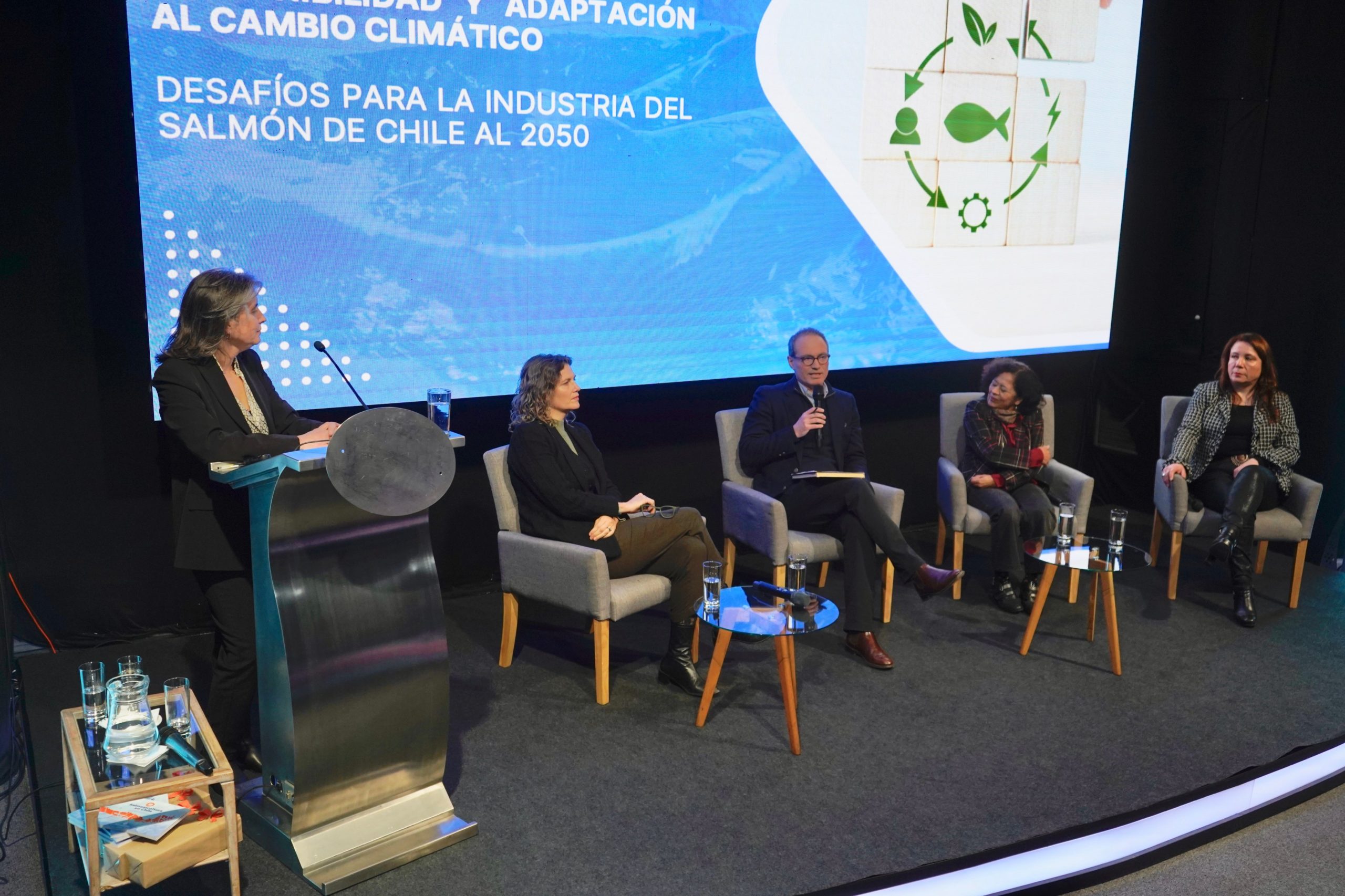 En el marco de la ceremonia en la cual una veintena de empresas salmonicultoras que suscribieron el Acuerdo de Producción Limpia (APL) inician, tras más de dos años de trabajo, su proceso de certificación, el Instituto Tecnológico del Salmón (Intesal) de SalmonChile y la Agencia de Sustentabilidad y Cambio Climático de la Corporación de Fomento de la Producción (Corfo) realizaron el encuentro “Sostenibilidad y Adaptación al Cambio Climático: Desafíos para la Industria del Salmón de Chile a 2050”.