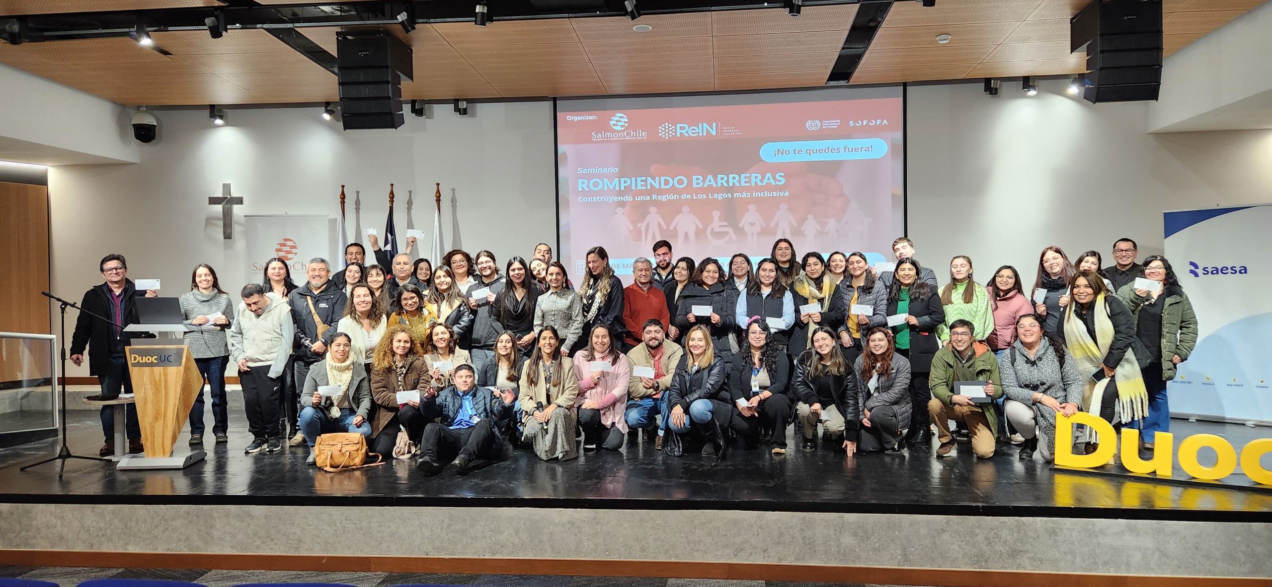 Con el objetivo de dialogar, compartir buenas prácticas y avanzar en la inclusión laboral de personas con discapacidad, más de 50 personas participaron del seminario “Rompiendo Barreras, Construyendo una Región de Los Lagos más Inclusiva”, realizado en el Auditorio Duoc UC de Puerto Montt. La jornada fue organizada por SOFOFA y SalmonChile, con la participación de SENADIS, SENCE, Grupo Saesa, Australis Seafoods, Cámara de Comercio, Industrias y Turismo y la Fundación Ronda.