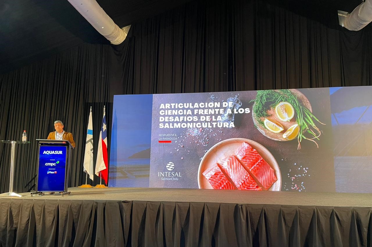 Uno de ellos fue el gerente general del Instituto Tecnológico del Salmón (Intesal), Esteban Ramírez, quien realizó una presentación sobre la articulación de la ciencia para la salmonicultura, dentro del panel de “Oportunidades y desafíos para la industria acuícola desde los productores”.