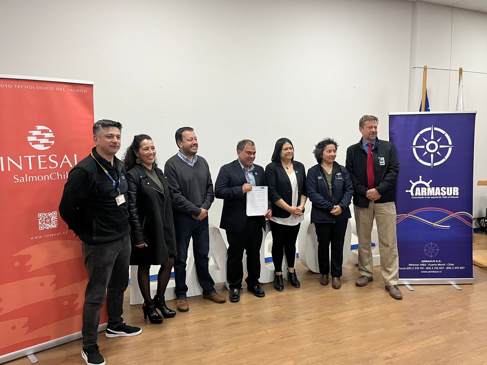 El acuerdo se realizó en el marco de la mesa del sector marítimo-portuario del Pacto por una Región Sostenible e Inclusiva que lidera el Gobierno Regional (GORE) de Los Lagos y su Consejo Regional (CORE), y contó con la firma Sernapesca, Subpesca, seremi del Medio Ambiente de Los Lagos, Armasur, Intesal y WWF Chile.