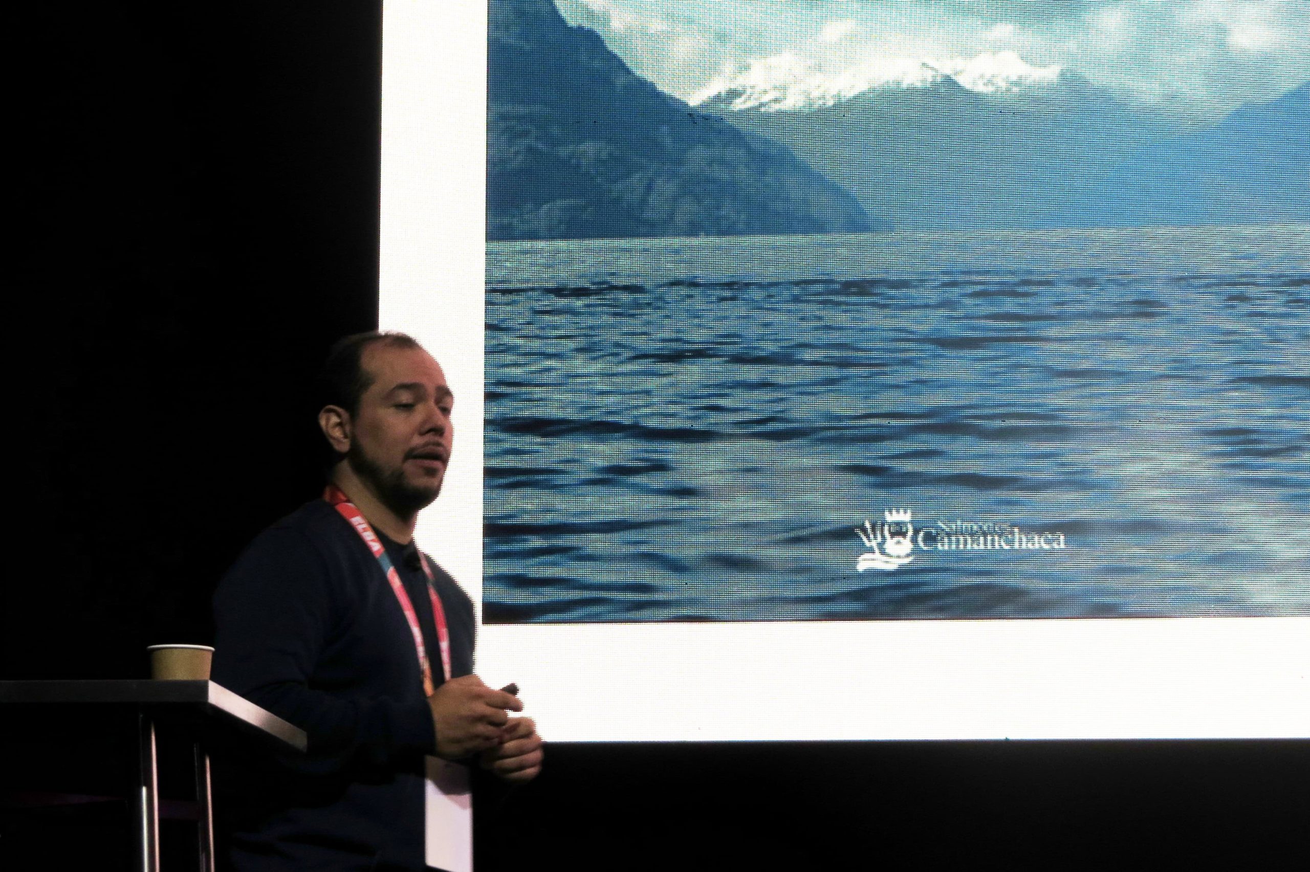 Una de las presentaciones relacionadas a la salmonicultura fue la del Coordinador de Salud e Inocuidad del Instituto Tecnológico del Salmón (Intesal), Alexander Jaramillo, quien dio a conocer los avances y desafíos que ha tenido el sector productivo en esta materia.