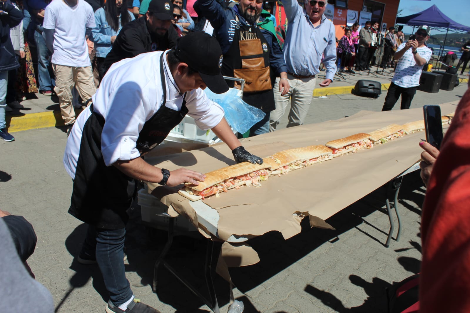 La iniciativa concluyó con un show musical y gastronómico, con una de las actividades más relevantes y esperadas: el sándwich de 1 kilómetro de largo. En esta oportunidad, participaron más de 400 personas que observaban curiosas cómo durante 5 horas y con salmón, choritos, lechuga, tomate y cebolla, se armaba el emparedado más grande que un quellonino había visto en su vida.
