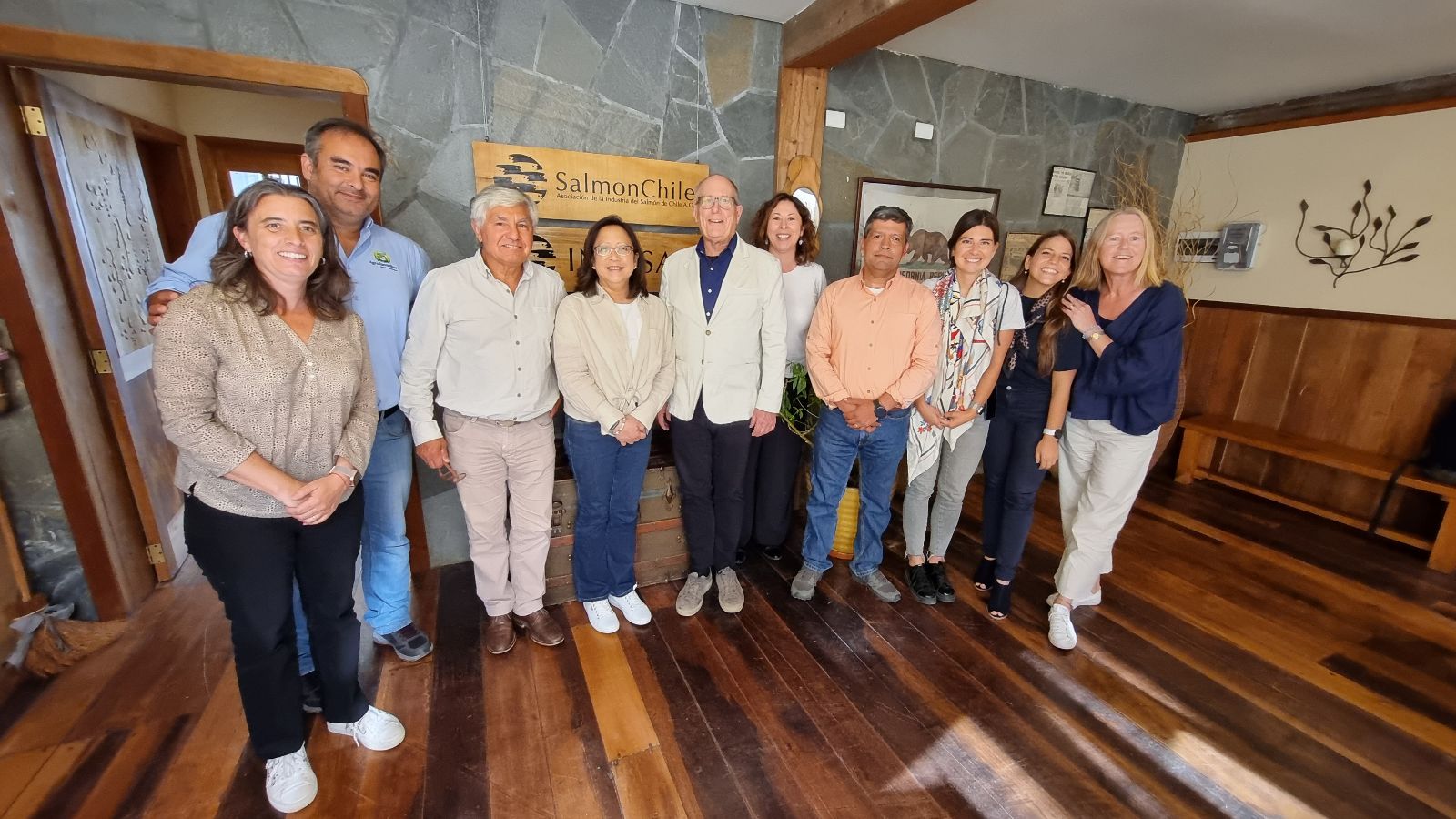 Puerto Varas, 3 de marzo de 2023. SalmonChile recibió la visita de la Universidad de Stanford, una de las principales universidades a nivel mundial y que en septiembre del año pasado creó la facultad de Sustentabilidad. En esta ocasión, los asistentes del gremio, junto a Intesal, representantes de Cermaq, MultiX, Blumar, Endeavor y Agrollanquihue, pudieron conversar con Marissa Mendoza y William Barnett, representantes de la prestigiosa casa estudiantil, quienes conocieron más acerca de las actividades y los desafíos en la sustentabilidad de la industria.